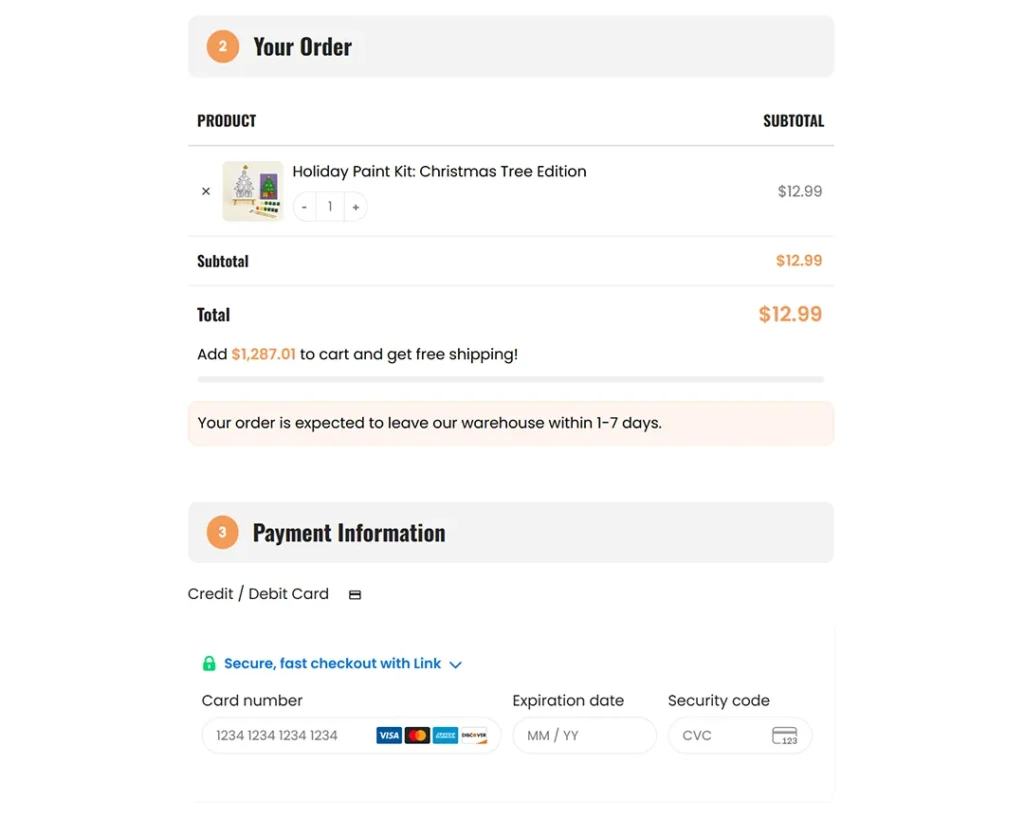 Your store includes fast and trusted payment options that keep customer data protected and transactions smooth from start to finish.
