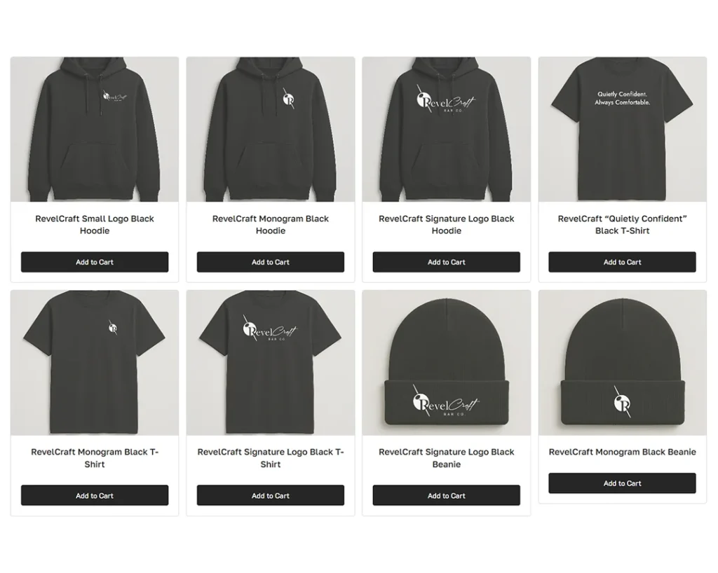 Stylish apparel brand with e-commerce storefront, custom graphics, and bartender-focused community